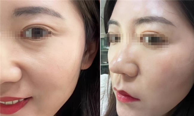 案例二:43岁干性肤质的林女士,长期熬夜工作。“最明显的是嘴角那两条木偶纹变浅了,而且不搓泥,跟防晒霜叠加也没问题。会回购。”